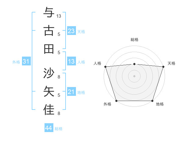 与古田 沙矢佳さんの天格は23画の5点!