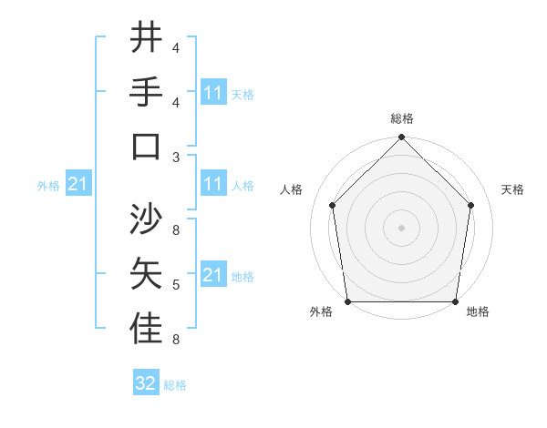 井手口 沙矢佳さんの天格は11画の4点!