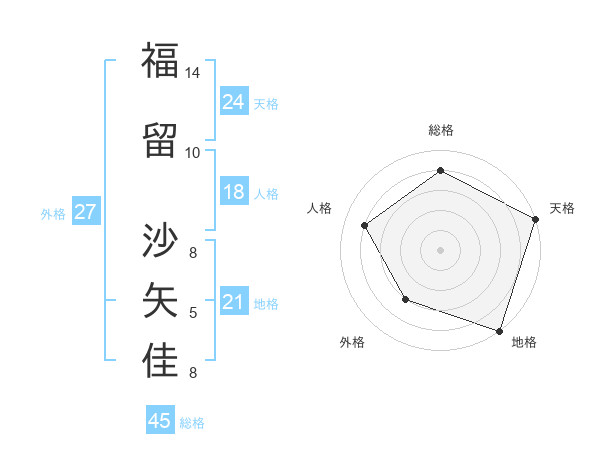 福留 沙矢佳さんの総格は45画の4点!