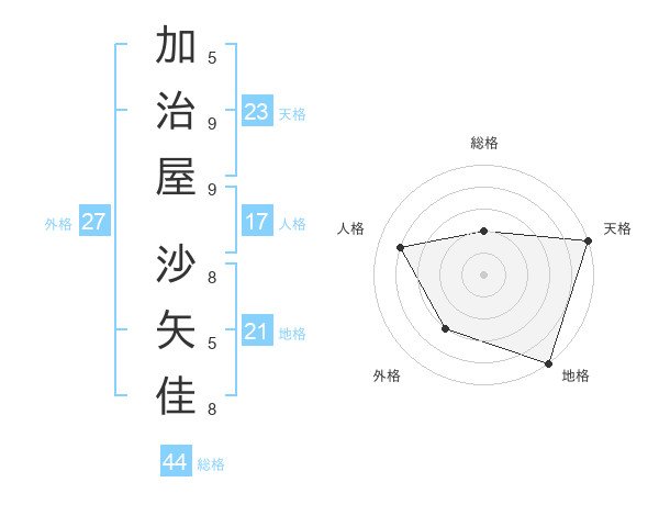 加治屋 沙矢佳さんを姓名の画数から五運を鑑定