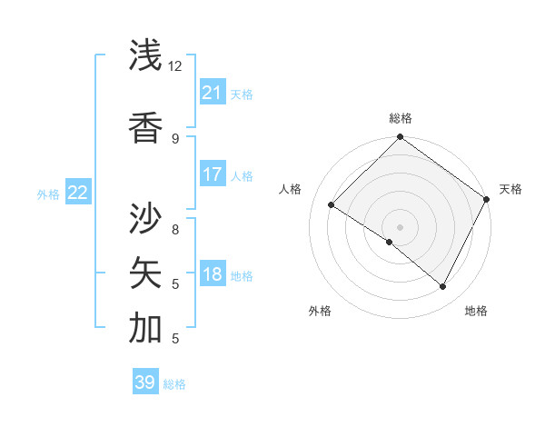 浅香 沙矢加さんを姓名の画数から五運を鑑定