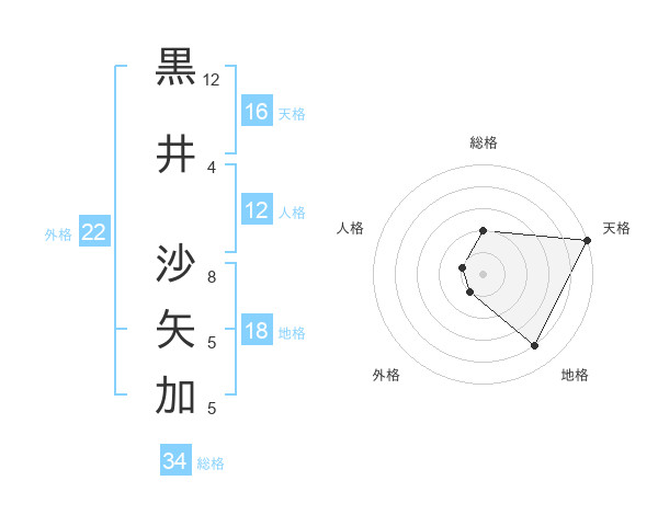 黒井 沙矢加さんを姓名の画数から五運を鑑定