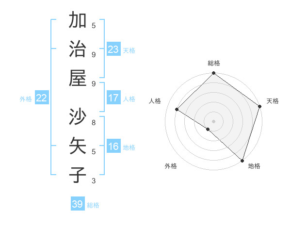 加治屋 沙矢子さんを姓名の画数から五運を鑑定