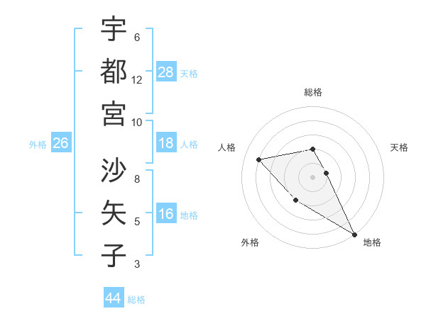 宇都宮 沙矢子さんを姓名の画数から五運を鑑定