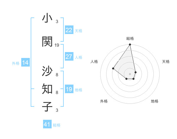 小関 沙知子さんを姓名の画数から五運を鑑定
