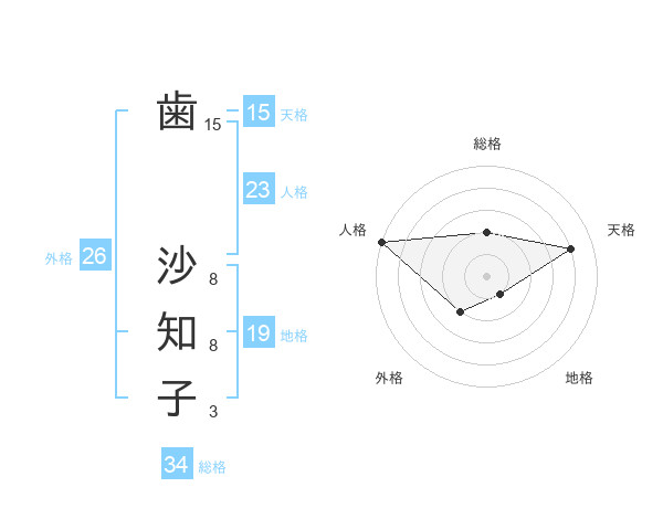 歯 沙知子さんの外格は26画の2点!