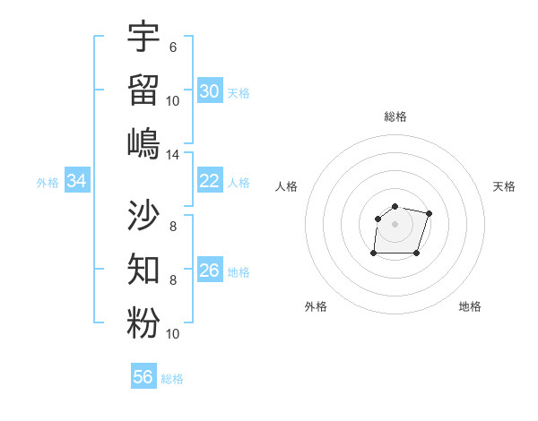 宇留嶋 沙知粉さんの総格は56画の1点!