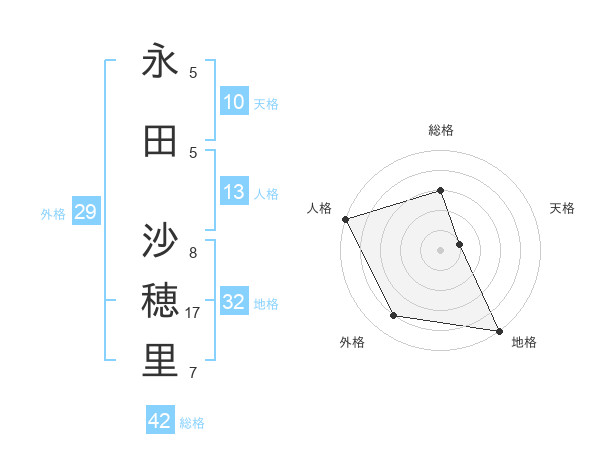 永田 沙穂里さんの総格は42画の3点!