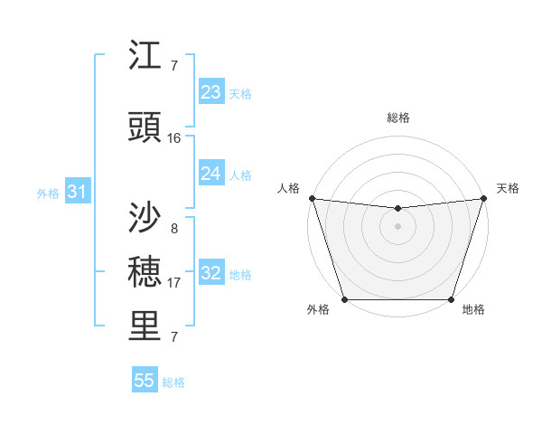 江頭 沙穂里さんを姓名の画数から五運を鑑定