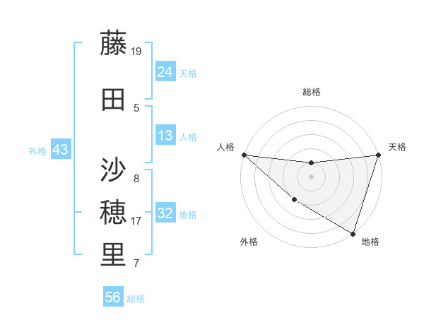 藤田 沙穂里さんを姓名の画数から五運を鑑定