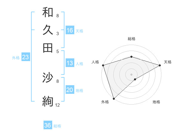 和久田 沙絢さんを姓名の画数から五運を鑑定