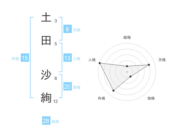 土田 沙絢さんを姓名の画数から五運を鑑定