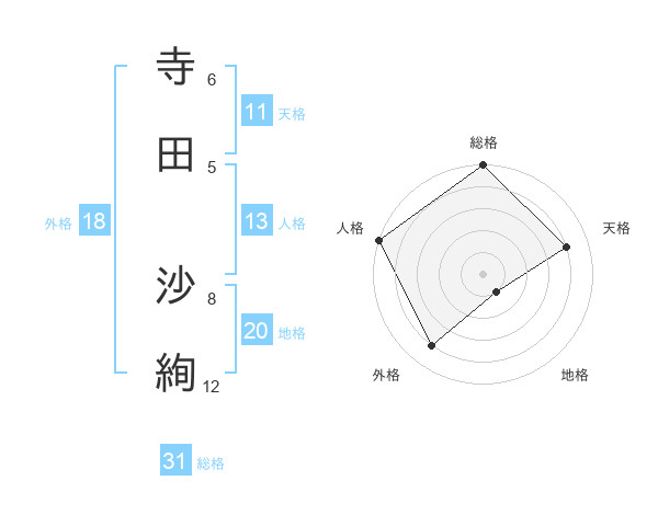 寺田 沙絢さんを姓名の画数から五運を鑑定