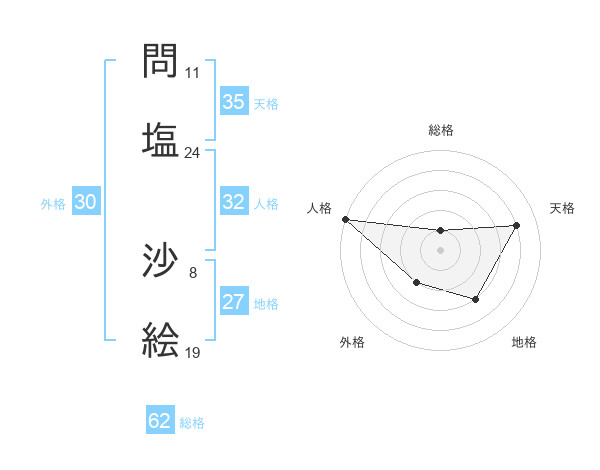 問塩 沙絵さんを姓名の画数から五運を鑑定