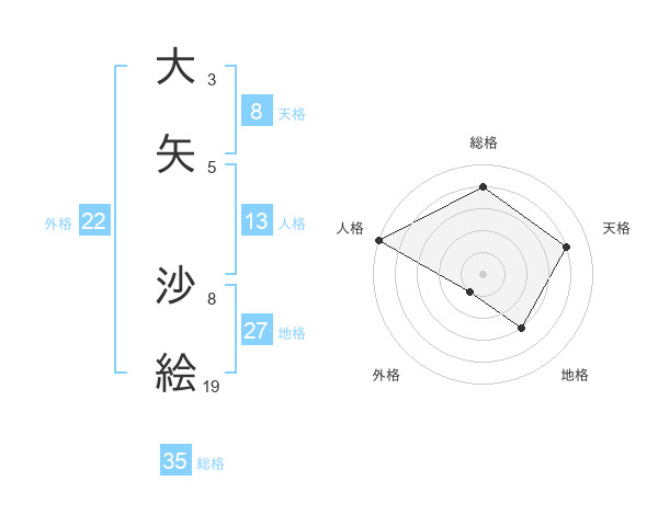 大矢 沙絵さんを姓名の画数から五運を鑑定