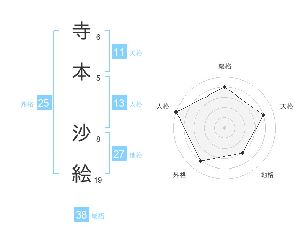 寺本 沙絵さんの総格は38画の4点!