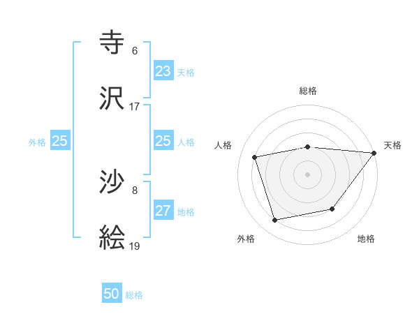 寺沢 沙絵さんの総格は50画の2点!