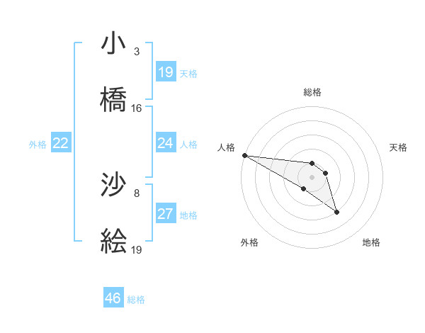 小橋 沙絵さんを姓名の画数から五運を鑑定