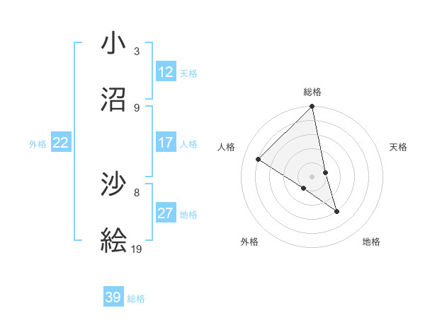 小沼 沙絵さんの総格は39画の5点!