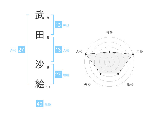 武田 沙絵さんの天格は13画の5点!