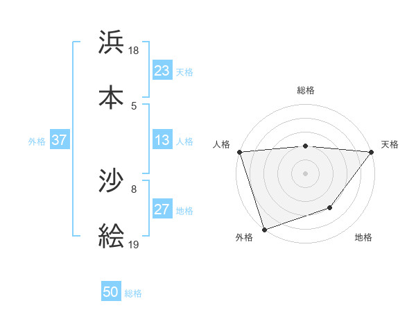 浜本 沙絵さんを姓名の画数から五運を鑑定