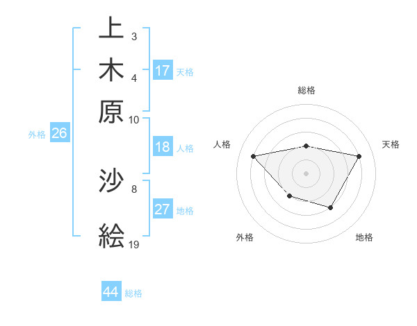 上木原 沙絵さんを姓名の画数から五運を鑑定