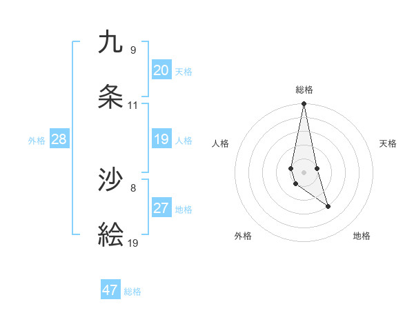 九条 沙絵さんを姓名の画数から五運を鑑定