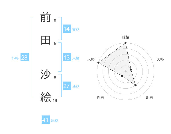 前田 沙絵さんを姓名の画数から五運を鑑定