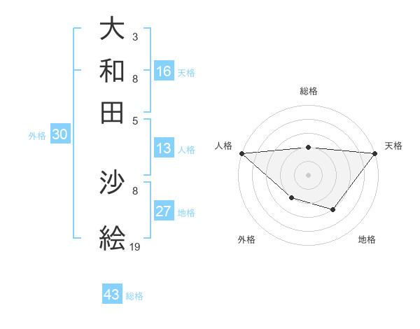 大和田 沙絵さんを姓名の画数から五運を鑑定