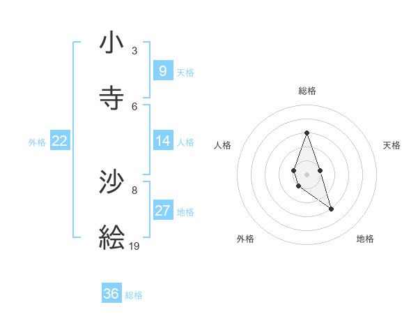 小寺 沙絵さんの総格は36画の3点!
