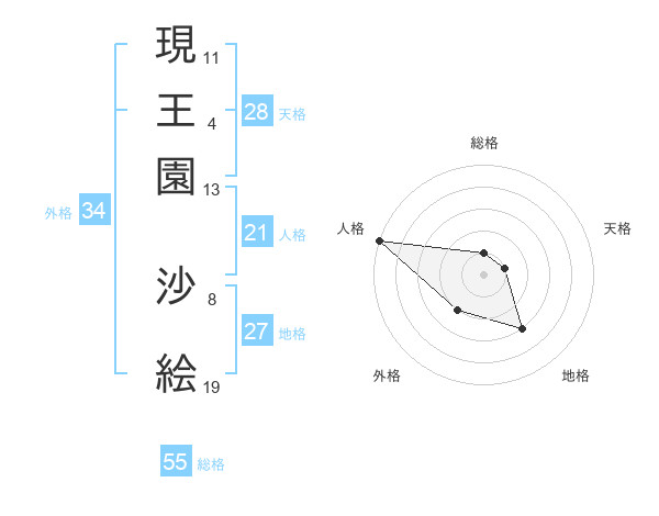 現王園 沙絵さんの総格は55画の1点!