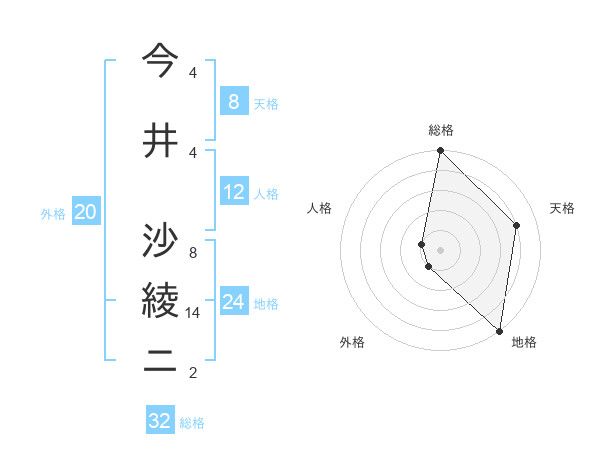 今井 沙綾ニさんの総格は32画の5点