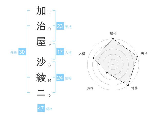 加治屋 沙綾ニさんを姓名の画数から五運を鑑定