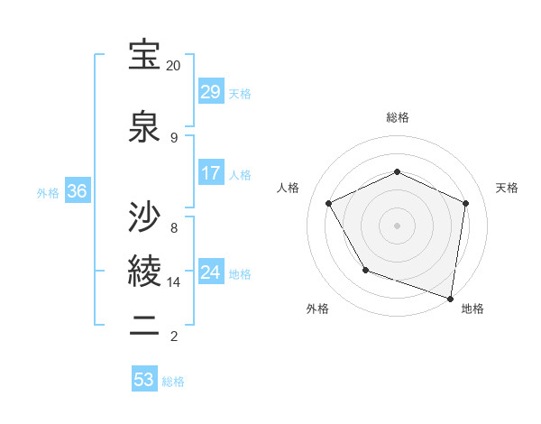 宝泉 沙綾ニさんを姓名の画数から五運を鑑定