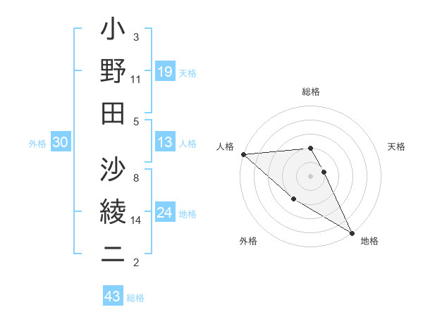 小野田 沙綾ニさんを姓名の画数から五運を鑑定