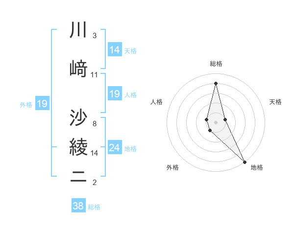 川﨑 沙綾ニさんを姓名の画数から五運を鑑定