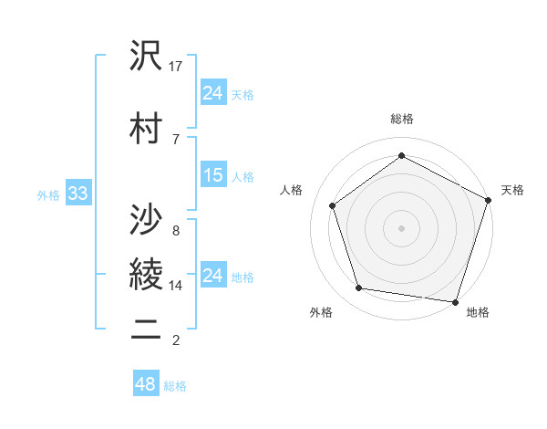 沢村 沙綾ニさんを姓名の画数から五運を鑑定