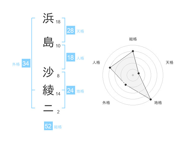 浜島 沙綾ニさんを姓名の画数から五運を鑑定
