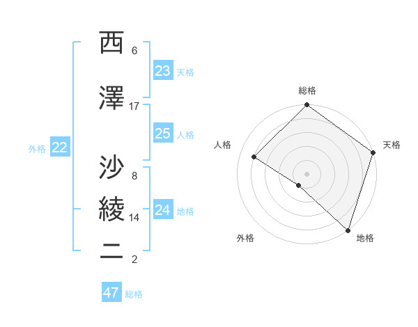 西澤 沙綾ニさんの名前の鑑定結果は!