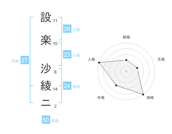 設楽 沙綾ニさんを姓名の画数から五運を鑑定