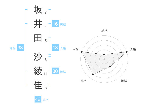 坂井田 沙綾佳さんを姓名の画数から五運を鑑定