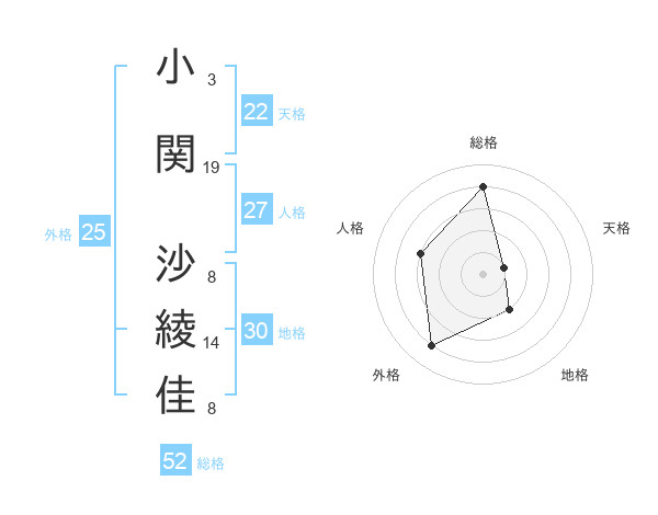 小関 沙綾佳さんを姓名の画数から五運を鑑定