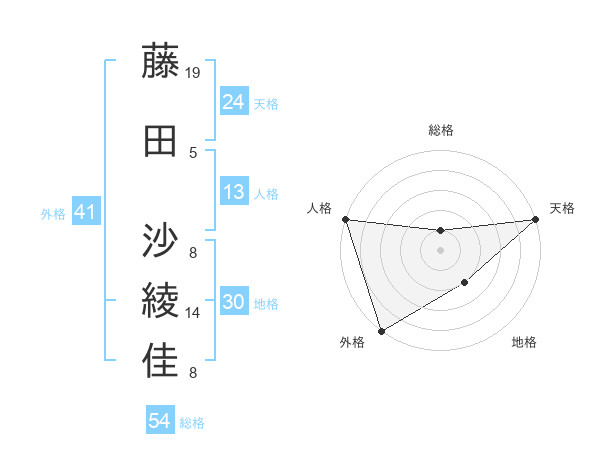 藤田 沙綾佳さんの外格は41画の5点!