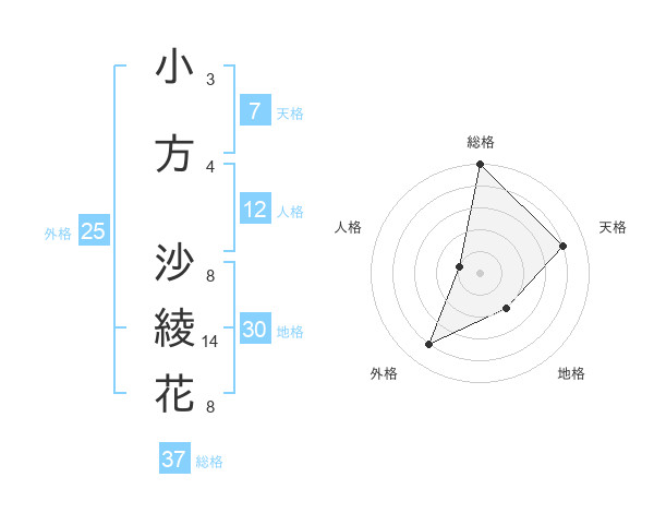 小方 沙綾花さんを姓名の画数から五運を鑑定