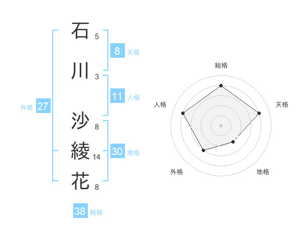石川 沙綾花さんを姓名の画数から五運を鑑定