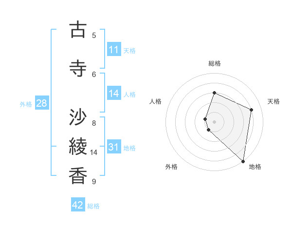 古寺 沙綾香さんの地格は31画の5点!
