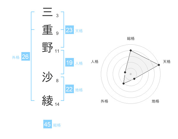 三重野 沙綾さんを姓名の画数から五運を鑑定