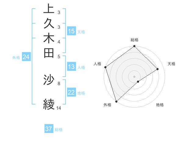上久木田 沙綾さんの総格は37画の5点!