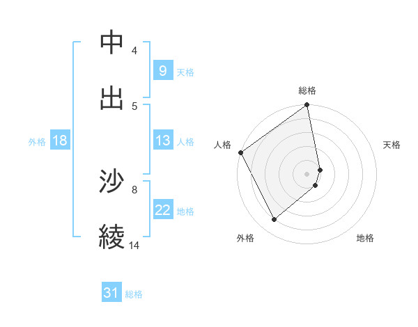 中出 沙綾さんを姓名の画数から五運を鑑定