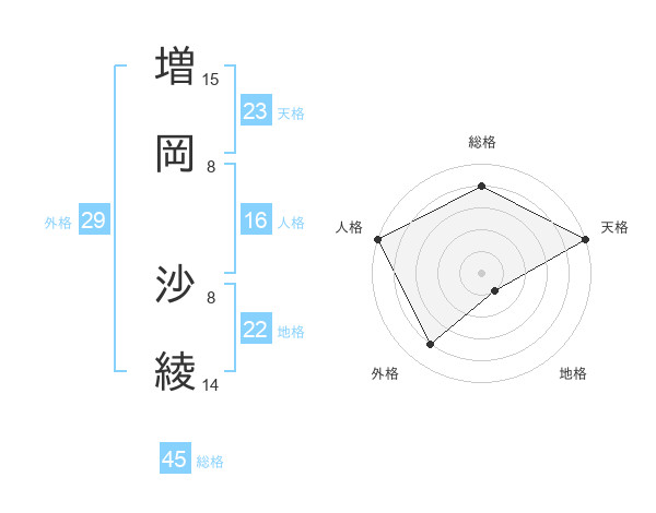増岡 沙綾さんを姓名の画数から五運を鑑定